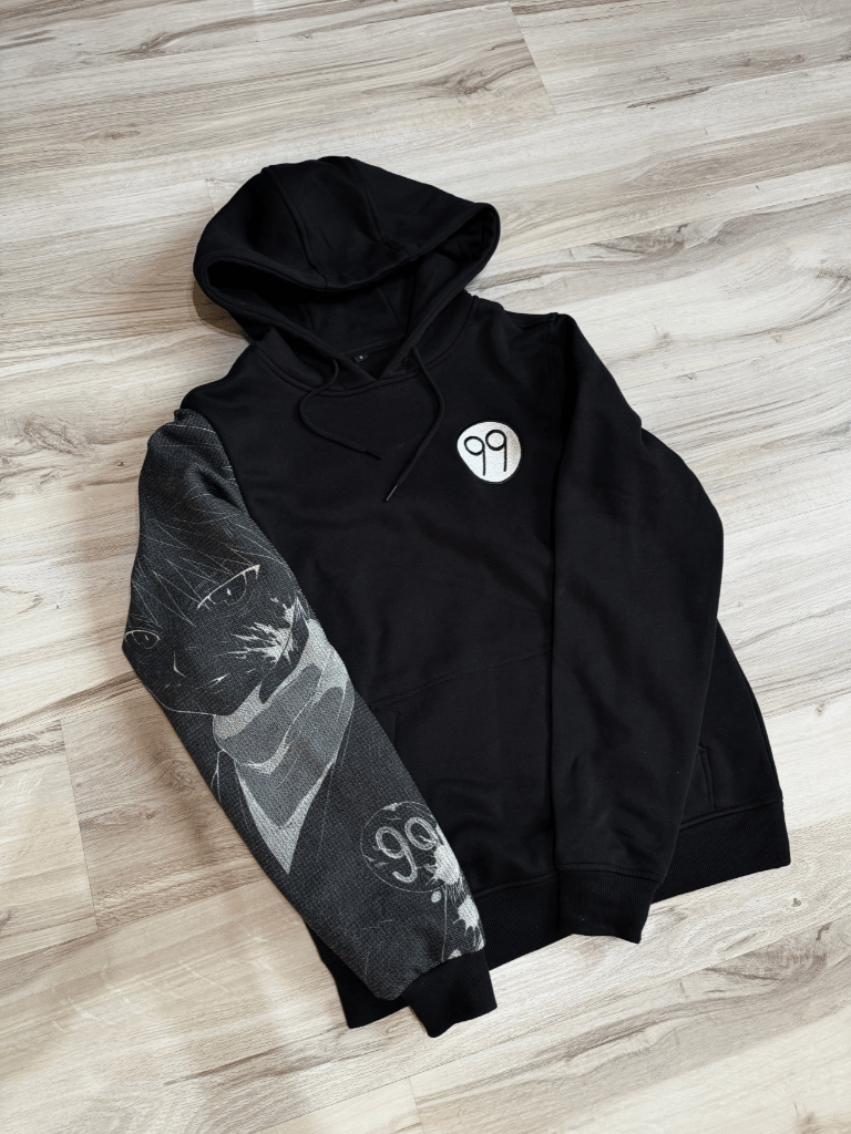 Na piersi bluzy znajduje się starannie wykonany haft przedstawiający charakterystyczną odznakę z numerem 99, należącą do Killuy. Ten subtelny, ale znaczący detal nawiązuje do egzaminu na Łowcę i podkreśla wyjątkową drogę bohatera. Minimalistyczny haft dodaje bluzie elegancji, a jednocześnie stanowi wyraźny ukłon w stronę fanów serii.