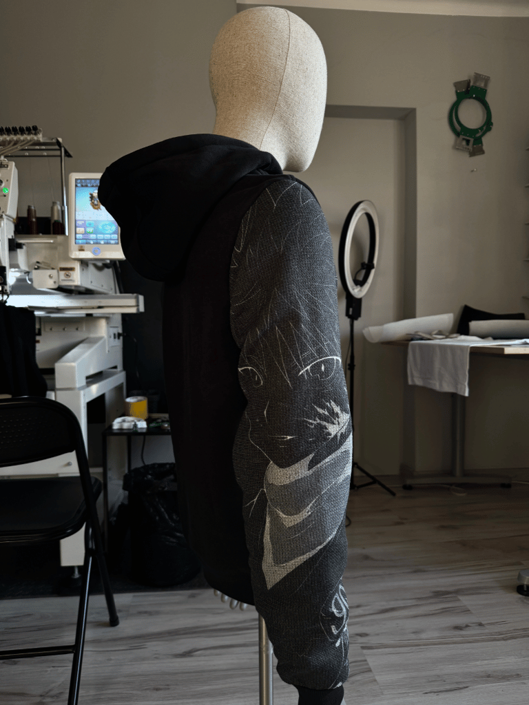 Rękaw zdobi tkany wizerunek Killuy Zoldycka, jednej z najbardziej charyzmatycznych postaci z Hunter x Hunter. Dynamiczny motyw oddaje jego chłodny charakter, niezwykłe zdolności oraz energię, z której słynie w serii. To element, który natychmiast przyciąga uwagę i nadaje bluzie wyrazisty, kolekcjonerski charakter.