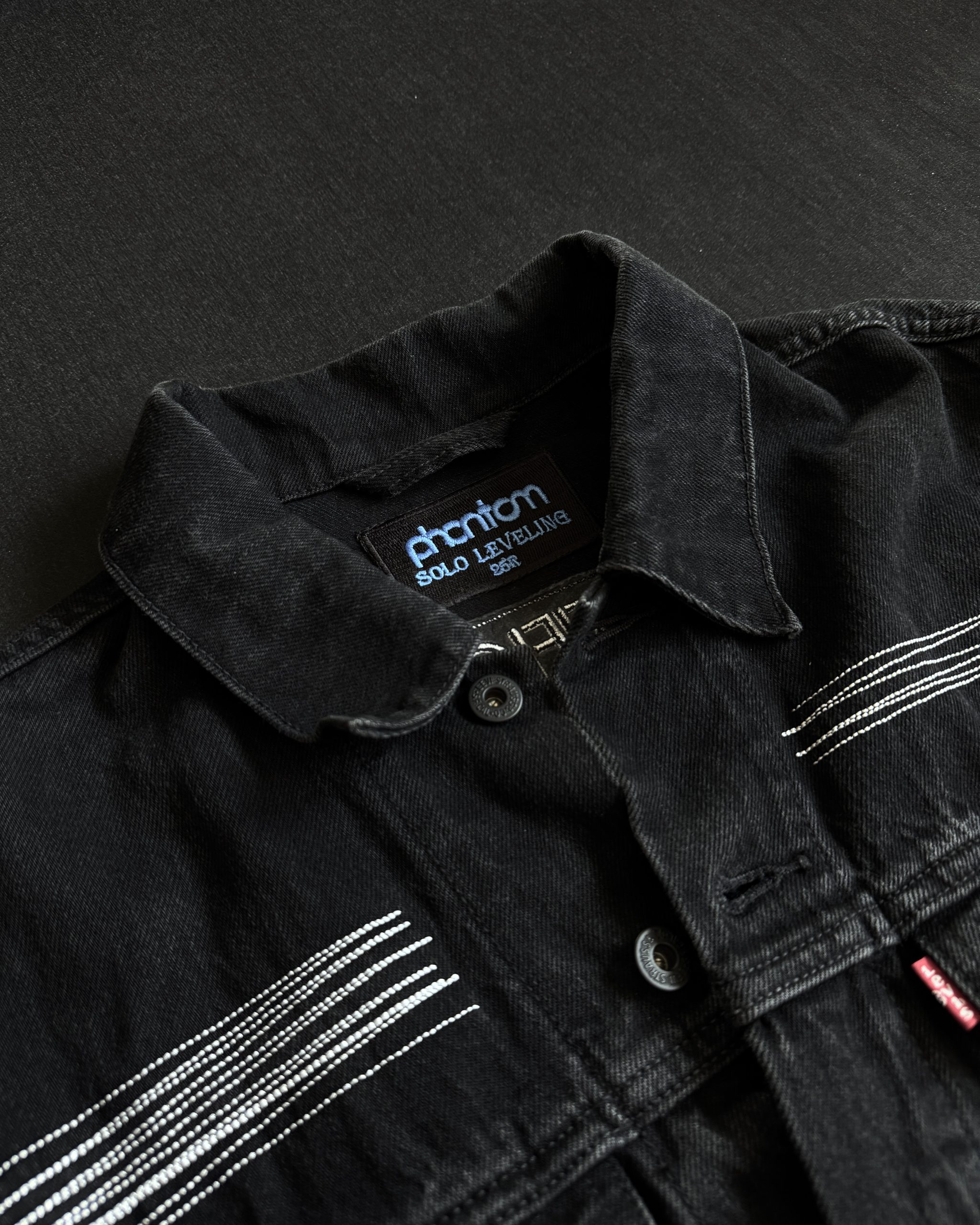 Na przodzie subtelne białe akcenty, które nawiązują do charakterystycznej estetyki serii, a w środku personalizowana metka „Phantom SOLO LEVELING”.